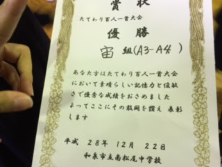 2時間目は縦割りの百人一首大会があります。3時間目は第2学期の終業式が行われます。